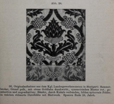 Handwörterbuch der Textilkunde aller Zeiten und Völker für Studierende, Fabrikanten, Kaufleute, Sammler und Zeichner der Gewebe, Stickereien, Spitzen, Teppiche und dergl., sowie für Schule und Haus, bearbeitet von Max Heiden, Stuttgart 1904 – access digital internet archive https://archive.org/details/handworterbuchde00heid_0